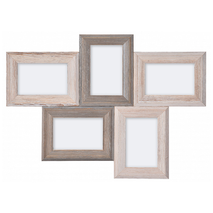 Рама Set сделана из массива сосны. Фактурность материала придает выразительности рамке. Она вмещает 5 фотографий: 2 рамки 30*40 см и 3 рамки 21*30 см. Поэтому отлично подходит для создания коллажа. Благодаря строгим паспарту рамка выглядит спокойной и уравновешенной.